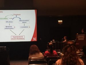 Qiaozhu Su, (below image) University of Nebraska-Lincoln, ended the session with her presentation on “MicroRNAs in the Pathogenesis of Lipogenic Diet Induced Hyperlipidemia and Insulin Resistance.” Her study investigated how micro RNAs could regulate the development of hyperlipidemia and insulin resistance induced by a high-fructose diet. Illumina small RNA sequencing was used to identify micro RNAs that were altered in response to a high-fructose diet in mouse livers. Su found that genetic depletion of one type of micro RNA protected the mice from fructose-induced insulin resistance, while overexpression of another type of micro RNA led to inflammatory stress in the liver. These findings suggest there may be potential to manipulate these micro RNAs to prevent the development of high-fructose diet induced hyperlipidemia and insulin resistance.