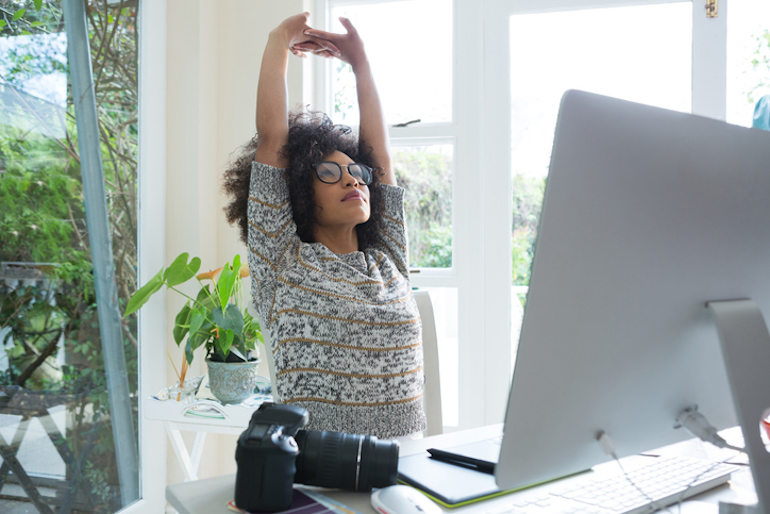 Need a Reminder? StretchClock reminds you to stretch and guides you through easy exercises you can do at the desk in office attire.